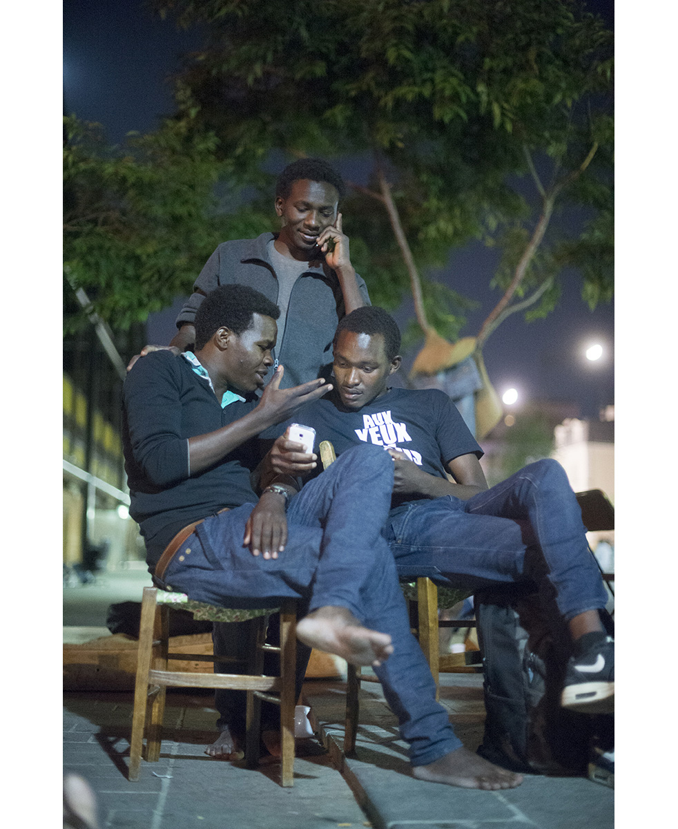 Dans le camp de réfugiés improvisé sur la Halle Pajol. #groupe