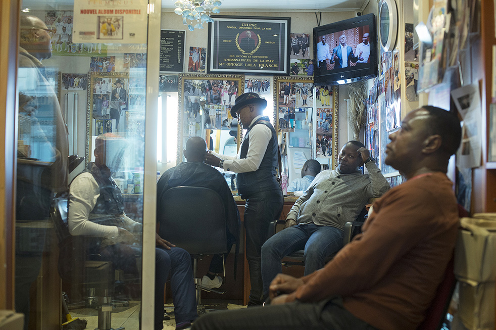 By jbIn La Goutte d'Or, metiers, salon de coiffurePosted September 7, 2015 Dans le salon de coiffure du pasteur Francis, rue Marcadet.