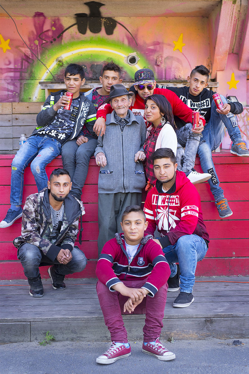 Mon ami Raymond Gurême, hier après-midi, avec les jeunes slovaques de "Kesaj Tchave", devant les locaux de "La Voix des Rroms" à Saint-Denis. #groupe