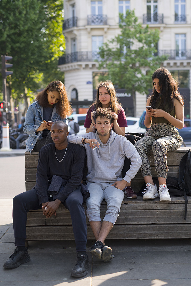 Quand je les ai vu, dans cette position, lui au centre, se faisant tripoter les cheveux par sa copine et leurs deux amies de chaque coté sur leur portable, je n’ai pas pu m’empêcher d’aller les voir.