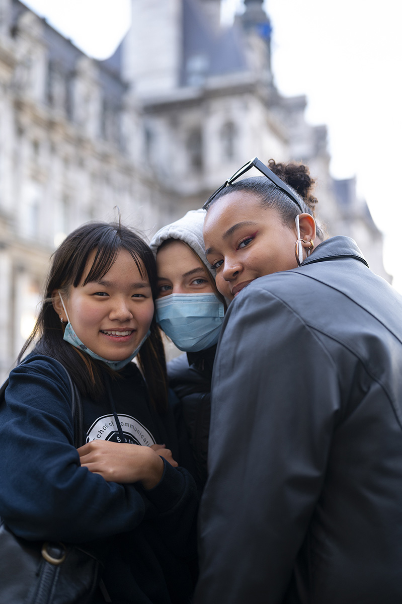 Comme ces 3 jeunes filles se faisaient un câlin devant l'Hotel de Ville, je leur ai demandé si elles connaissaient Robert Doisneau.