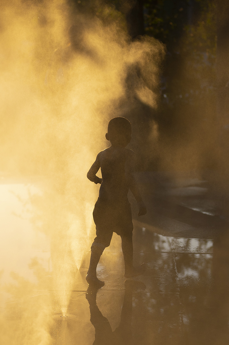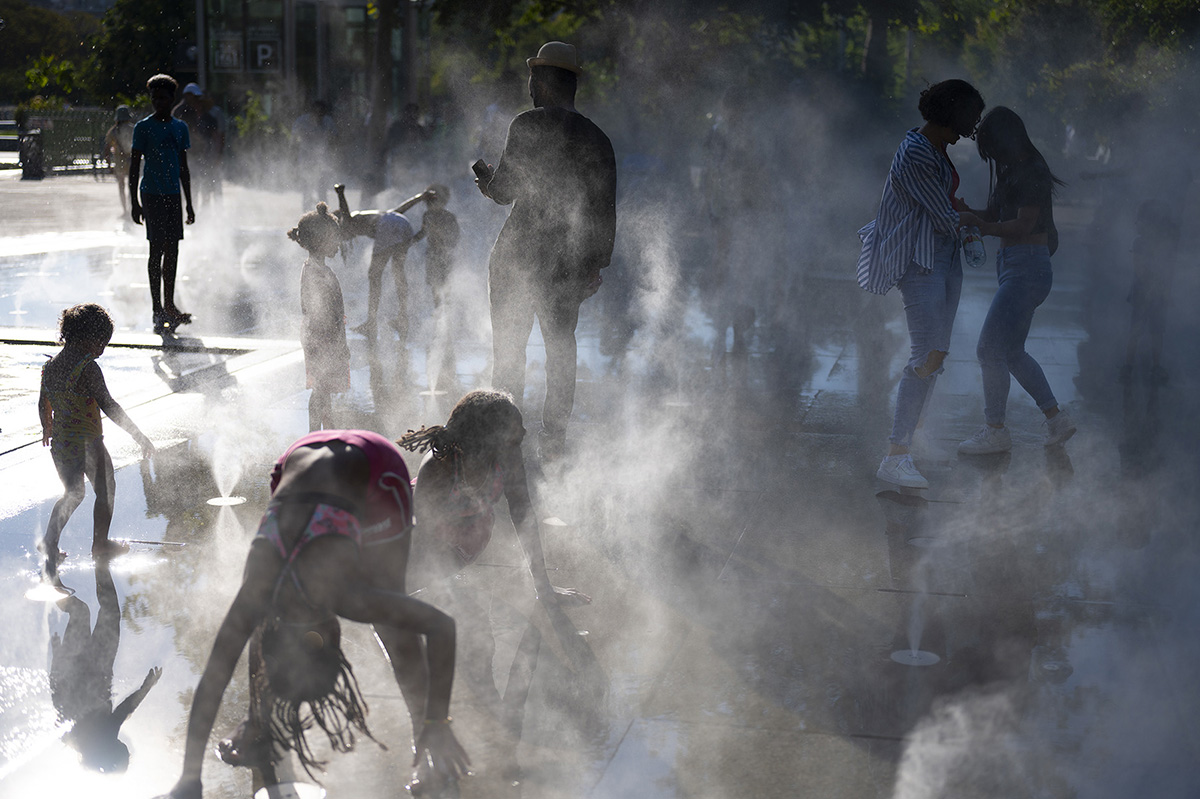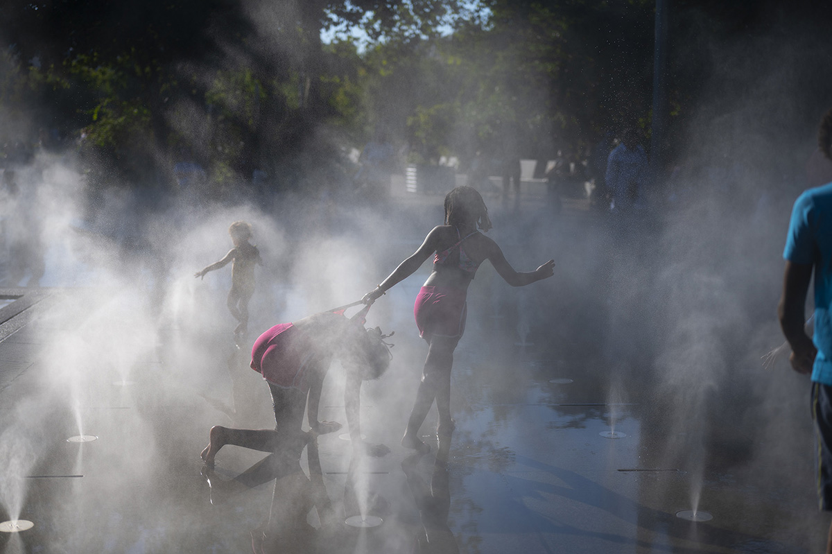 Hier après-midi, sous les brumisateurs des Halles
